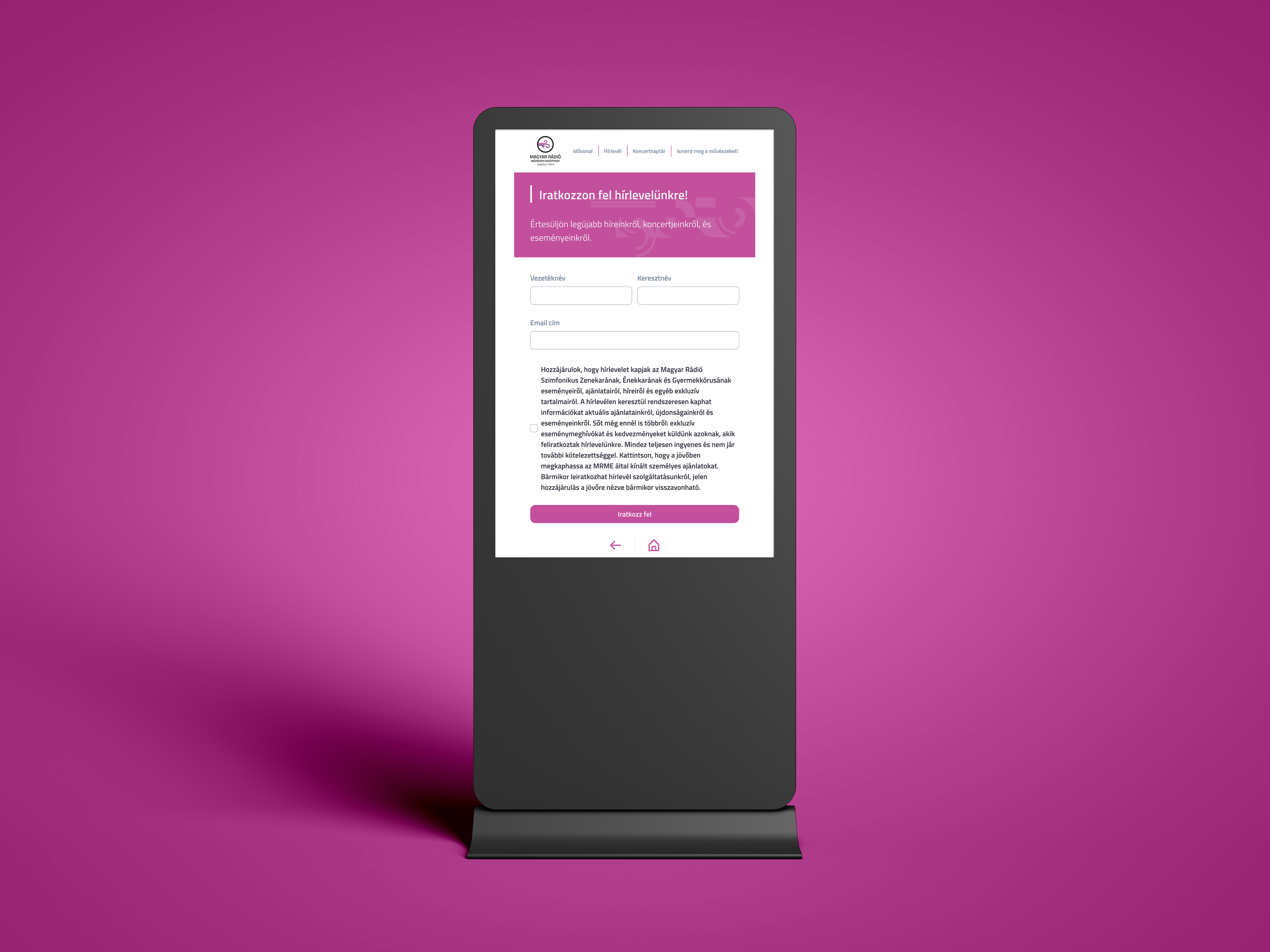 Hungarian Radio Art groups has 3 ensebles at their choir, and they wanted to display them on a touchscreen kiosk. I designed and developed an intuitive interface for the Radio where they can display all their choir's information, their latest news, and also a newsletter sign up option.